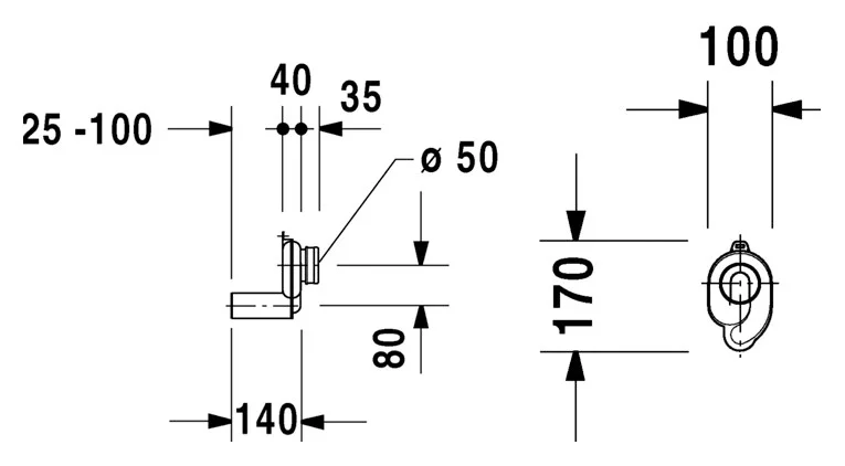 Сифон с вытяжкой Duravit 005112, сток внутренний горизонтальный.