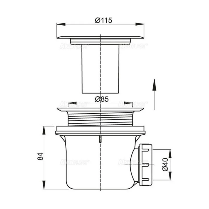 Корпус сифона. Хромированная решетка слива из нержавеющей стали. Монтажный комплект