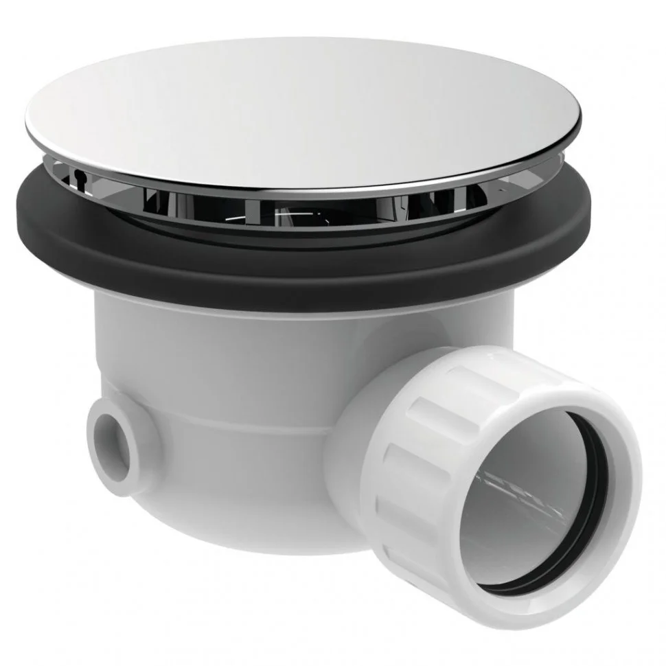 Слив для керамических и акриловых душевых поддонов O90 мм, с плоской хромированной крышкой