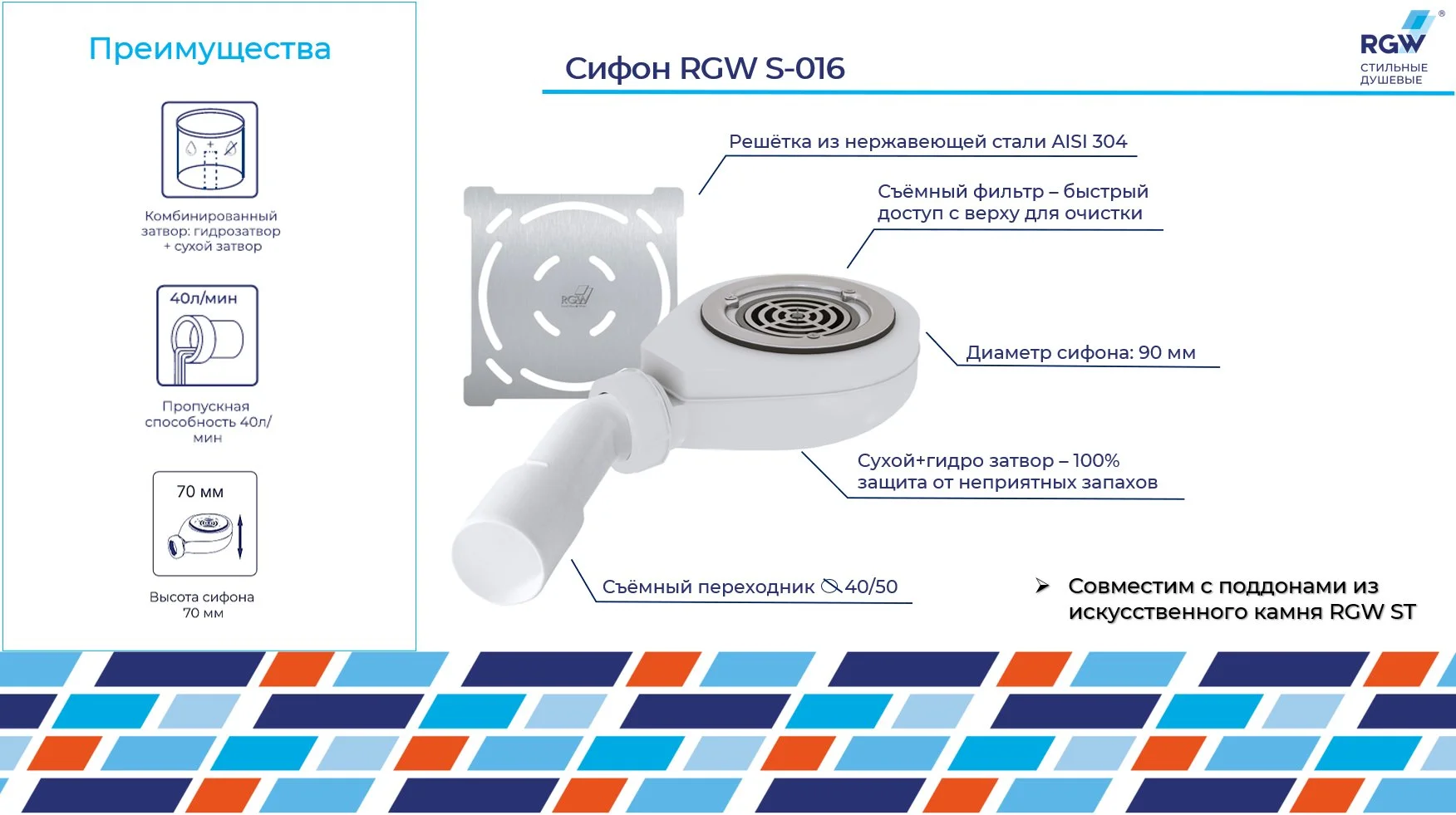 Cифон RGW S-016 разработан для поддонов из искусственного камня RGW ST, с учетом пожеланий покупателей!