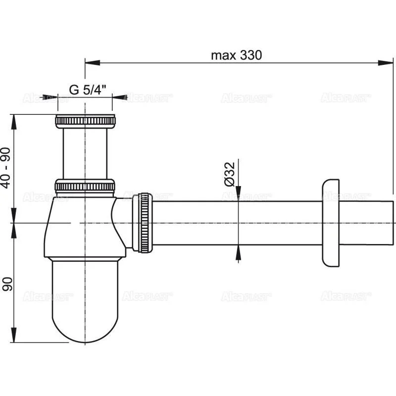 Корпус сифона. Резьбовое соединение 5/4" для подключения слива раковины или биде. Обрамление металлическое
