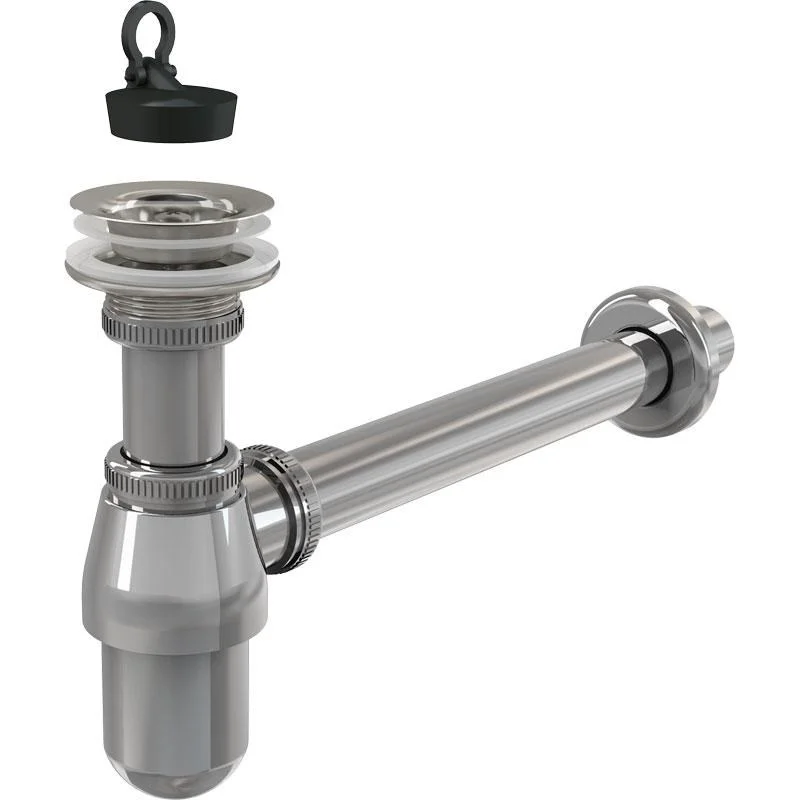 Комплект цельнометаллического сифона и сливного клапана раковины