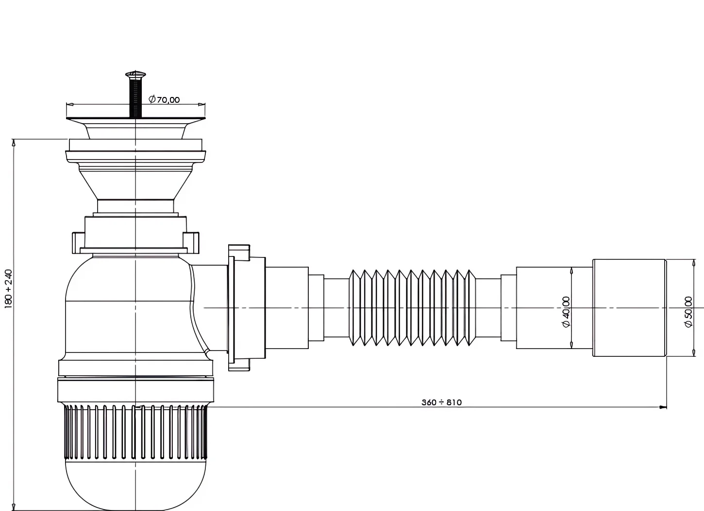 Сифон для раковины/умывальника.Габаритытовара: 180х80х400/850 Регулируемая высота: 6 см Диаметр слива: 40 мм Подключение к канализации: 40/50 мм Тип сифона: бутылочный Решётка из нержавеющей стали