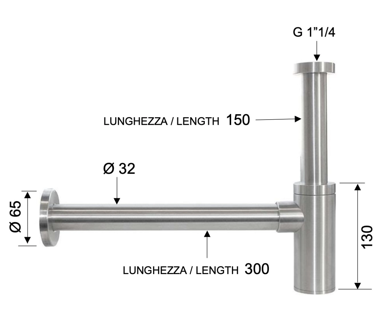 Сифон для раковины Remer INOX SS958L, нержавеющая сталь -->