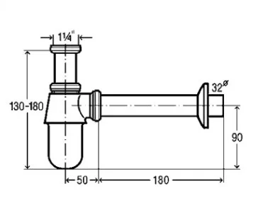 С пробкой, 1 1/4 x 32, хром, разъемная чашка выпуска, хромированная латунь.