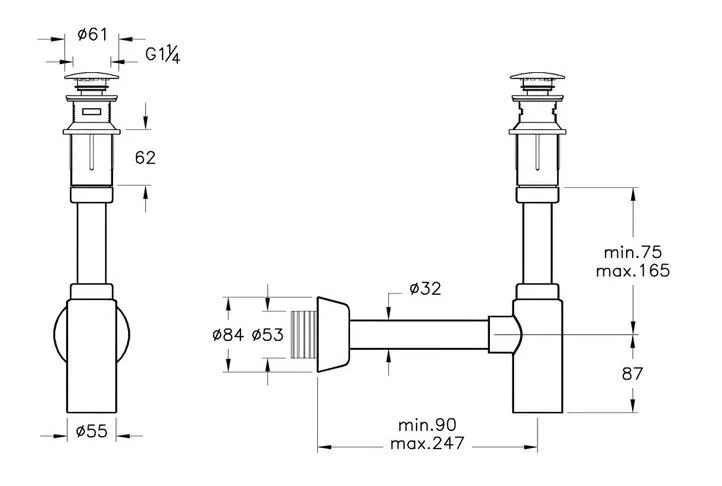 • Для слива диаметром 1 1/4” дюйма