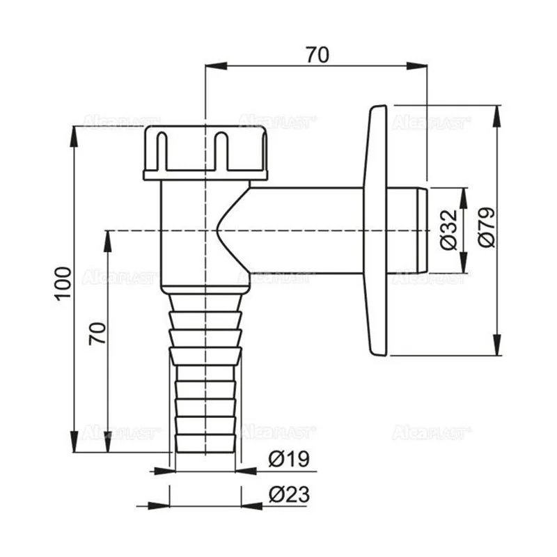 Штуцер для шланга Ø19 и Ø23 мм