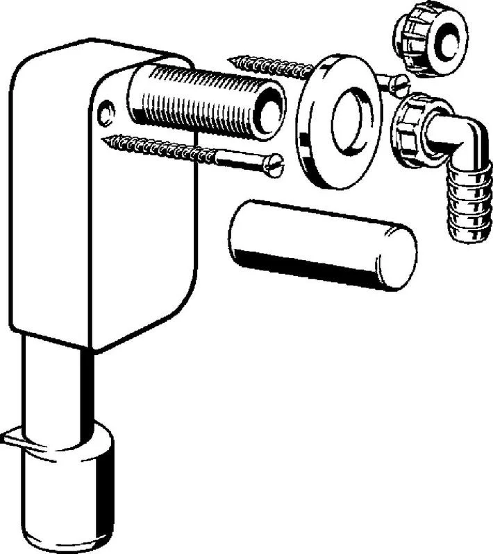 вертикальный отводящий патрубок, крепежные болты, защитный колпачок для резьбы, резьбовое соединение для шланга 90°, торцевая заглушка, накладка из нержавеющей стали