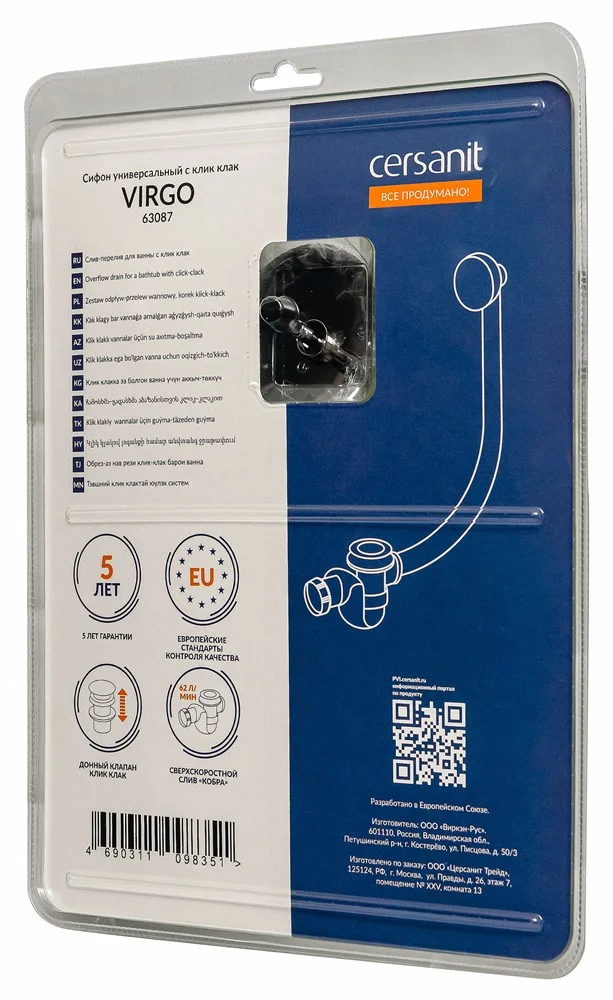 Купить Сифоны для ванн производства Cersanit (Россия), коллекция VIRGO, код товара: 221875 можно выгодно в Сантемо.ру: