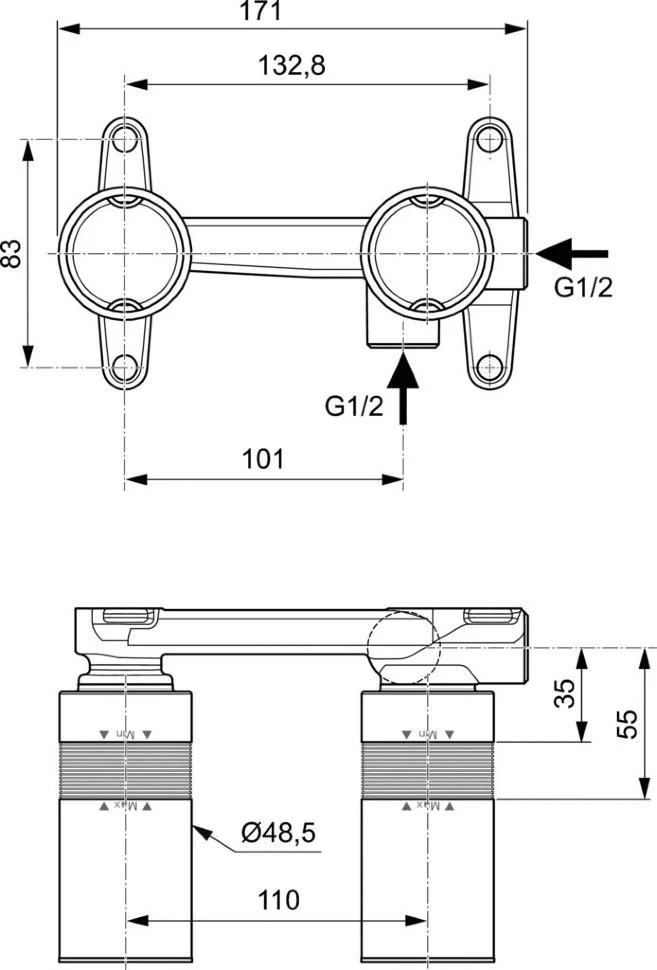 Скрытая часть смесителя для раковины Ideal Standard BUILT-IN A1313NU встраиваемый