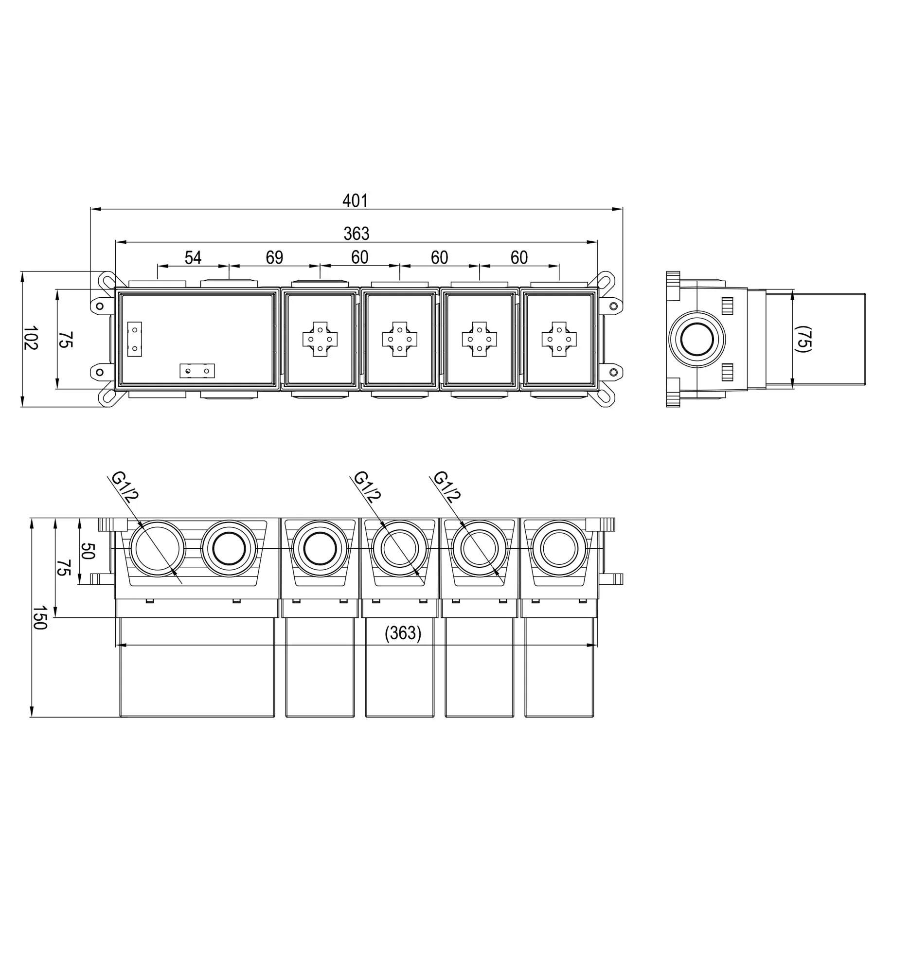 Скрытая часть Wonzon & Woghand (WW-INB163A) термостатического смесителя на 3 потребителя