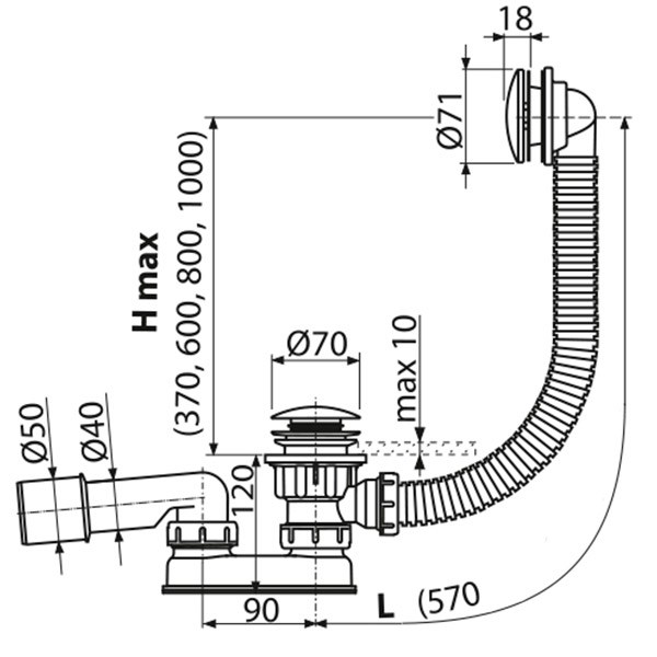 Слив-перелив для ванн автомат пластиковый (click/clack) автомат.