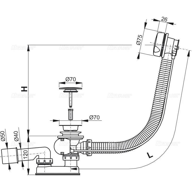 Слив-перелив Alcaplast A51BM-100 автомат, 100 см, белый