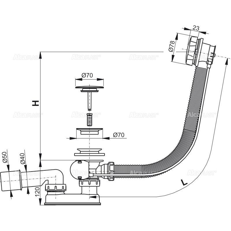 Корпус сифона с системой перелива. Поворотная стальная накладка, хромированная. Пробка из хромированного пластика. Хромированная решетка слива из нержавеющей стали. Гидрозатвор сифона из полипропилена, сваренный ультразвуковым методом, устойчив к термичес