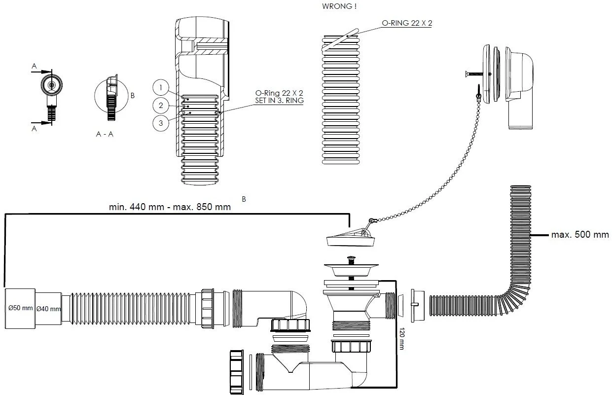 Слив-перелив Aquanet 00328880 с цепочкой, выпуск d40/50