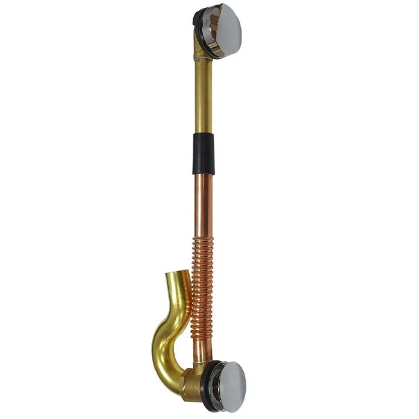 Материал: Корпус из латуни, гофрированная труба из красной меди, выпуск и нижний клапан - хромированная латунь