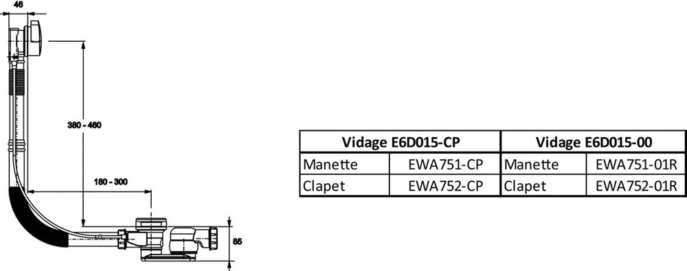 E6D015-00, сифон для ванн, 60 см, автомат, хрои, Jacob Delafon, Франция.
