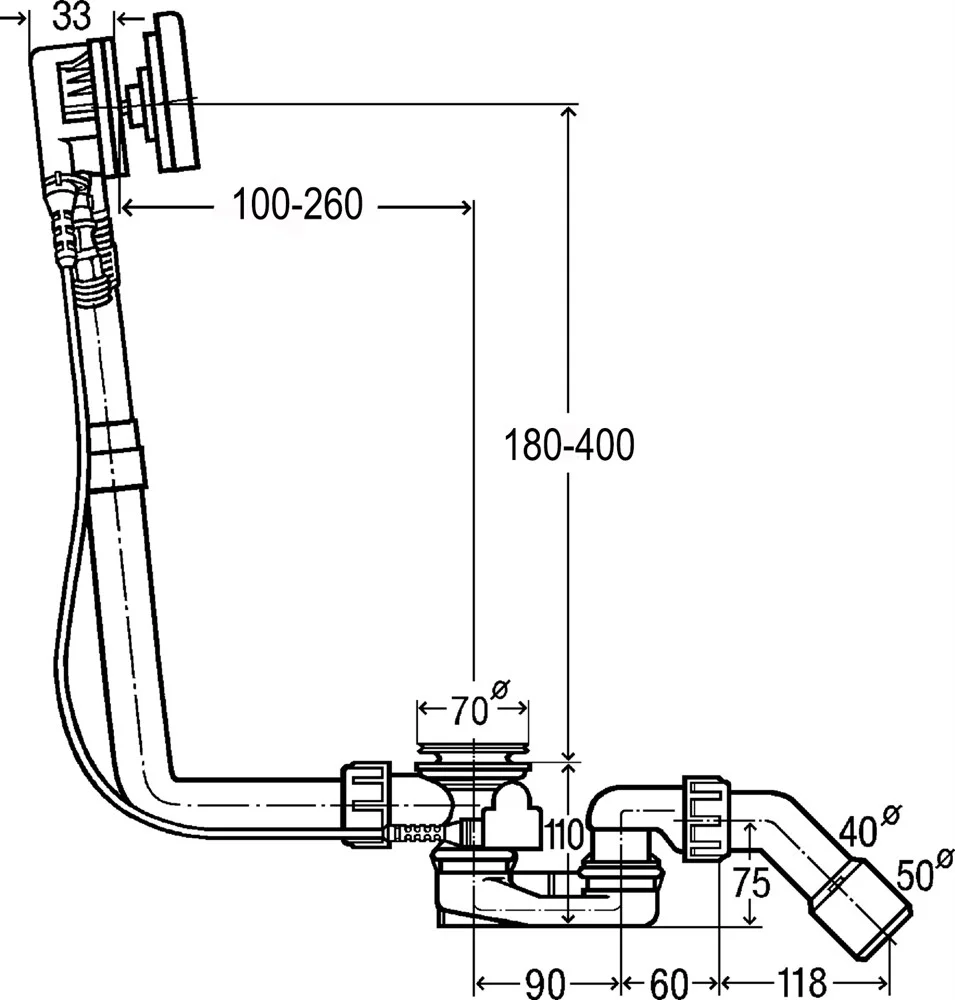 плоская конструкция - требуется только 33 мм свободного места за ванной, возможность поднятия уровня воды в ванной