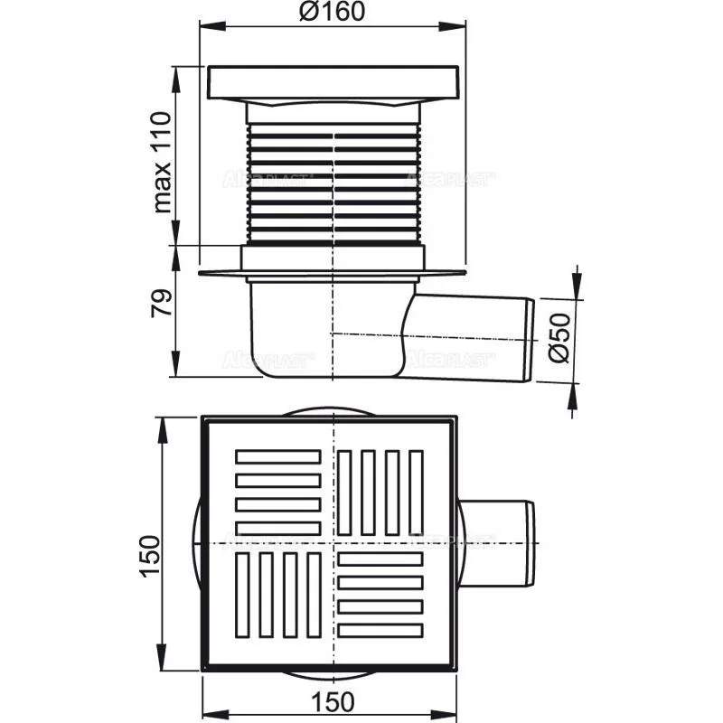 Боковое подключение к канализационному стоку Ø50 мм