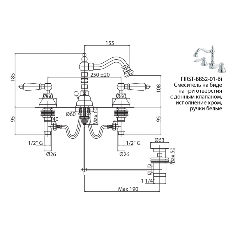 Смеситель для биде Cezares First (FIRST-BBS2-03/24-M) золото 24 карат