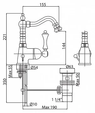 Смеситель для биде Cezares Margot (BSM2-03/24-Bi) золото 24 карат MARGOT-BSM2-03/24-Bi