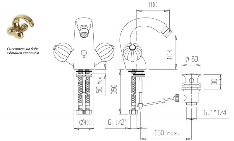 Смеситель для биде Cezares Royal Palace (BS1-02-MS) бронза ROYAL PALACE-BS1-02-MS