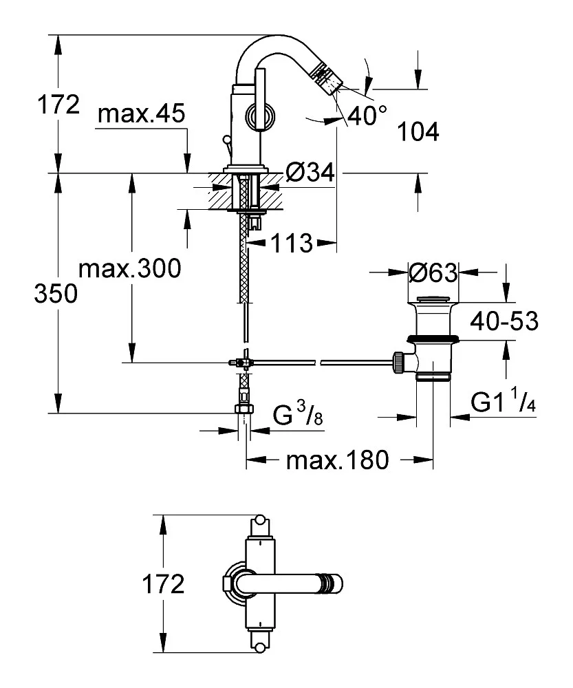 Смеситель для биде GROHE Atrio Jota с донным клапаном, хром (24026000)
