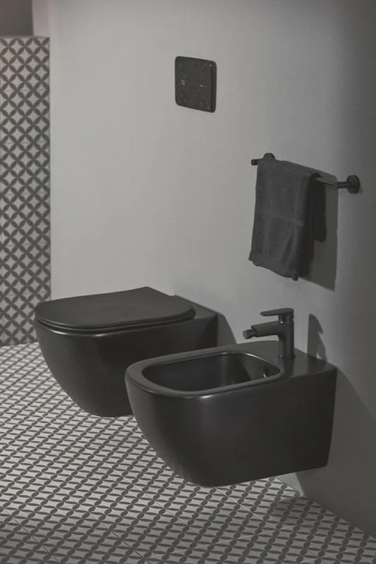 CERAFINE O Однорукоятковый смеситель для биде, картридж 28 мм FirmaFlow с функцией HWTC (ограничение максимальной температуры горячей воды), гибкая подводка G3/8’’, система монтажа EASY-FIX (облегченный монтаж), аэратор на шаровом шарнире (поворотный) с ограничением потока на 5 л/мин., металлическая рукоятка с индикаторами горячей / холодной воды, с металлическим донным клапаном