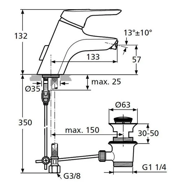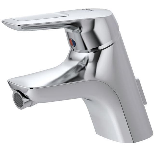 CERAMIX BLUE Однорукоятковый смеситель для биде под 1 отверстие, система монтажа TOP-FIX (быстрый монтаж сверху), гибкая подводка G3/8, картридж 40 мм IS с функцией CLICK (ограничение потока воды), с функцией HWTC (ограничение максимальной температуры горячей воды), литой корпус с отверстием под стержень донного клапана, металлический донный клапан, металлическая рукоятка с индикаторами горячей / холодной воды, аэратор CASCADE M18x1 на шаровом шарнире