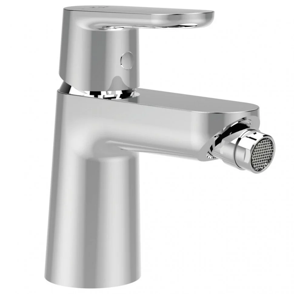 VITO Смеситель для биде, система монтажа EASY-FIX (облегченный монтаж), гибкая подводка G3/8", картридж 28 мм с функцией HWTC (ограничение максимальной температуры горячей воды), без функции CLICK, металлический донный клапан, металлическая рукоятка с индикаторами горячей / холодной воды, аэратор CASCADE