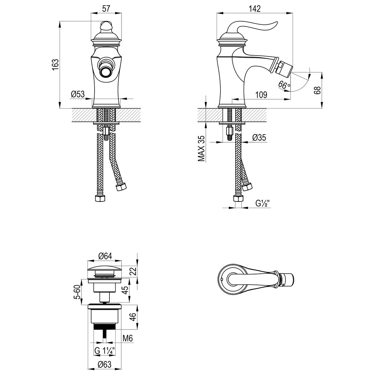- Донный клапан Click/Clack 1¼" в цвет смесителя