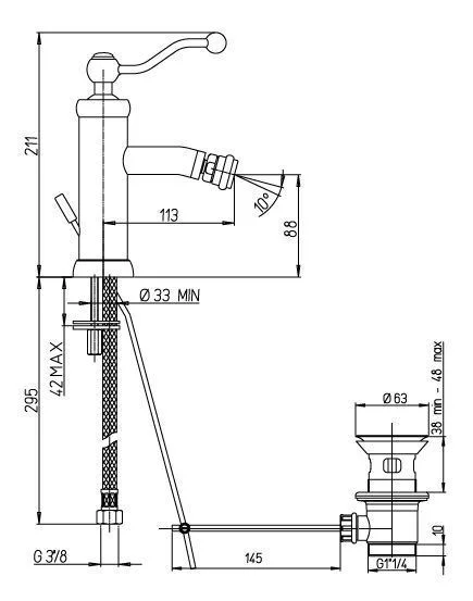 - Длина излива: 113 мм