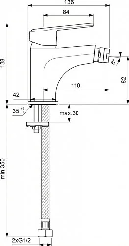 - Длина смесителя: 136 мм