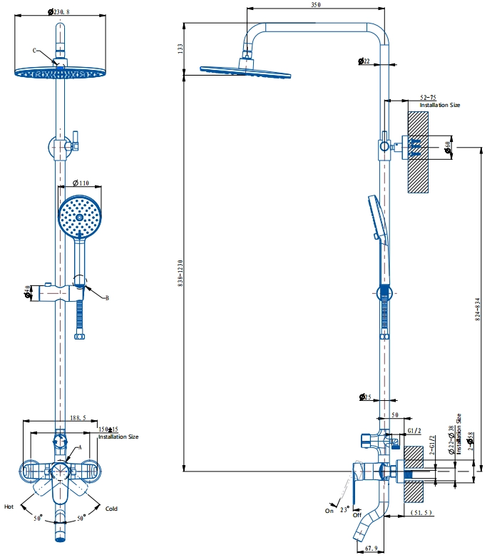 душевая стойка, верхний душ, душевой гарнитур, крепления, гибкая подводка, шланговое подключение, кронштейн для верхнего душа, переключатель потоков, излив, смеситель для ванны с душем