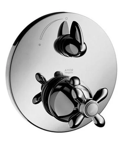Термостат с запорным вентилем, с крестовой рукояткой, внешняя часть.