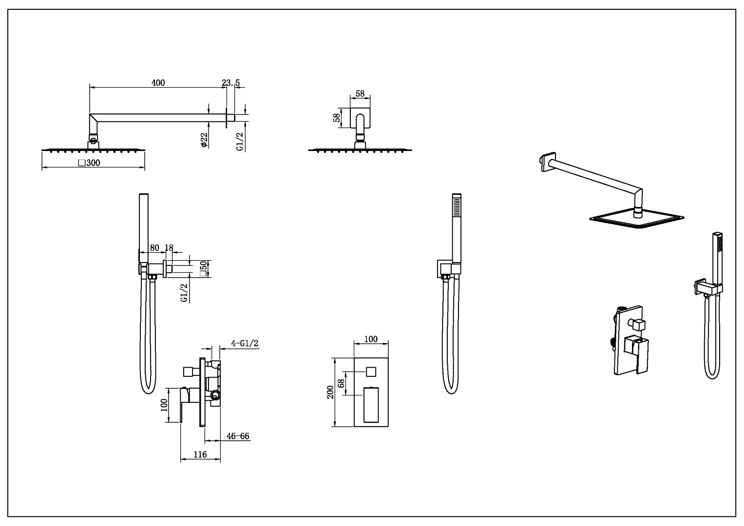 Душевая система Boheme Qubic 474-3-CB встраиваемый Copper Brushed