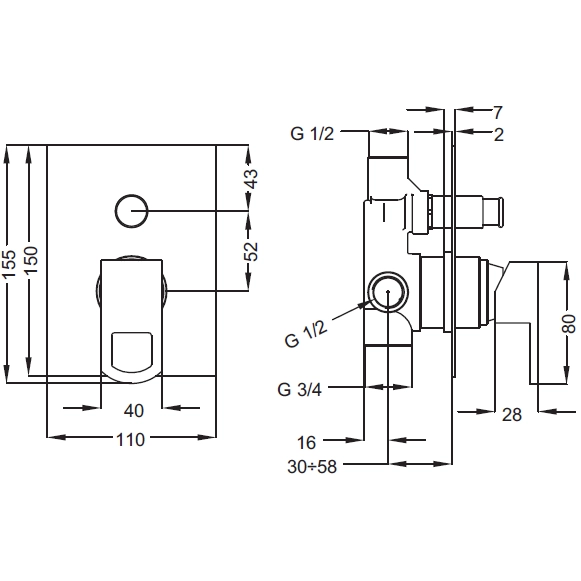 Смеситель для душа Cezares Levico (LEVICO-VDIM-01-Cr) скрытого монтажа