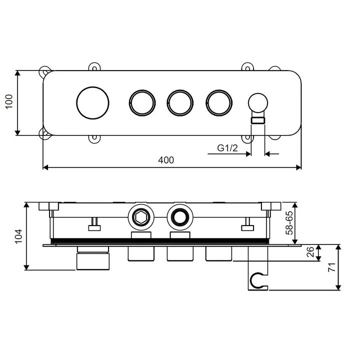 - два входа (для горячей и холодной воды): 1/2”;
