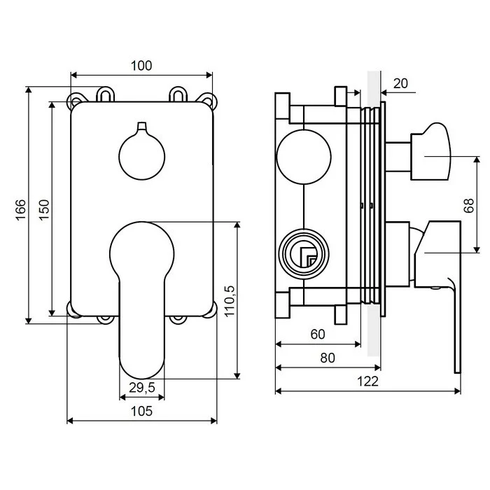 - два входа (для горячей и холодной воды): 1/2”;