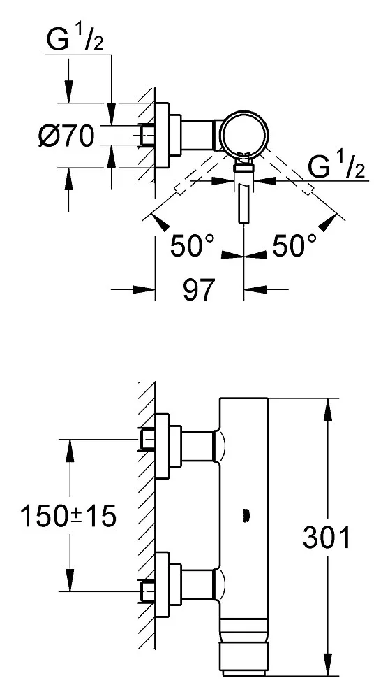 • Отвод для душа снизу 1/2″ со встроенным обратным клапаном