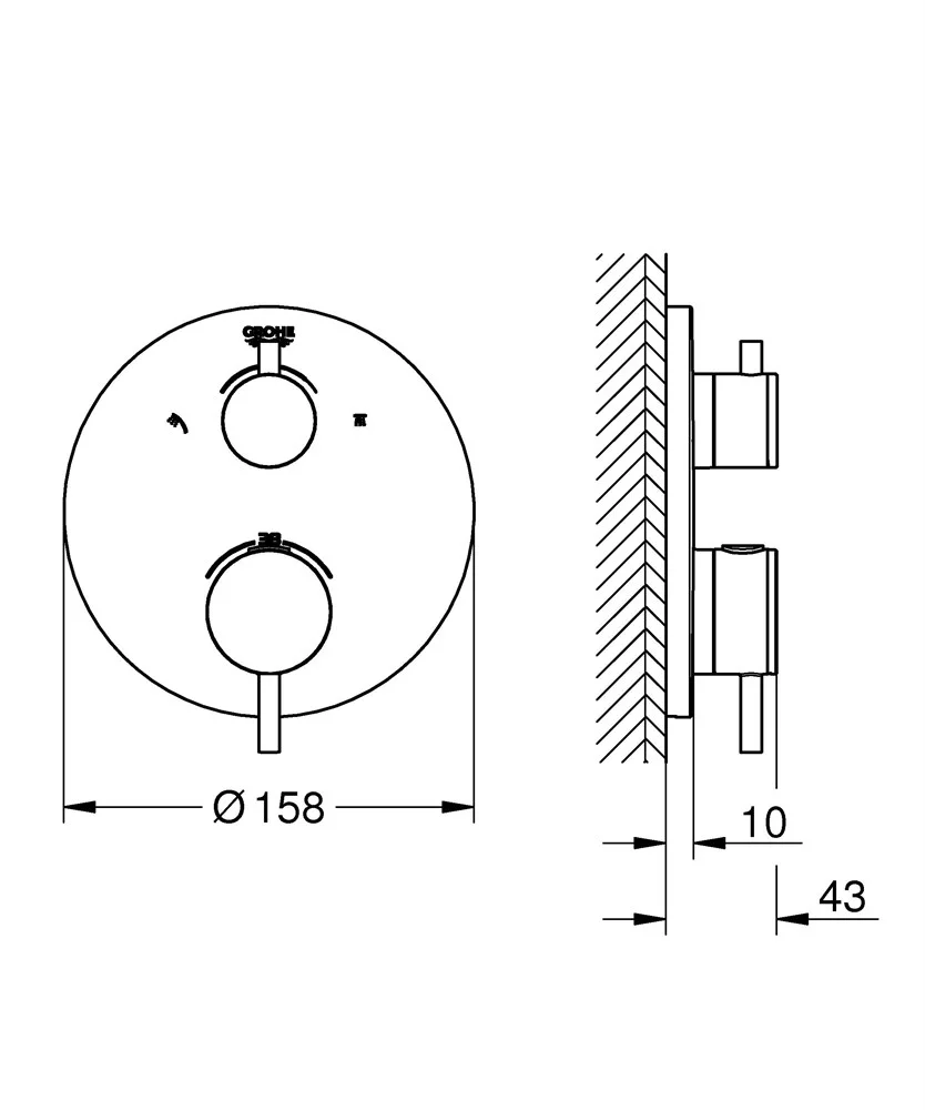 - GROHE SafeStop Plus опционно огачничитиель температуры на 43°C / 46°C, включен