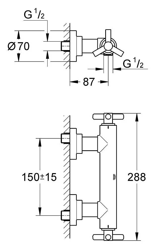 - Встроенные обратные клапаны в душевом отводе 1/2″
