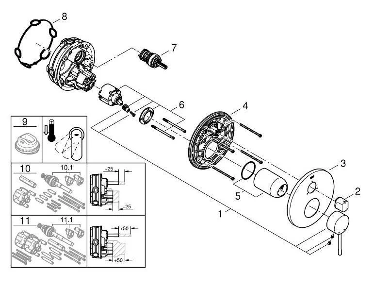 - комплект верхней монтажной части для GROHE Rapido SmartBox 35 600 000