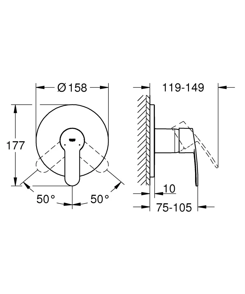 - с настенными розетками GROHE QuickFix (скрытые эксцентрики, уплотнение, скрытый монтаж)