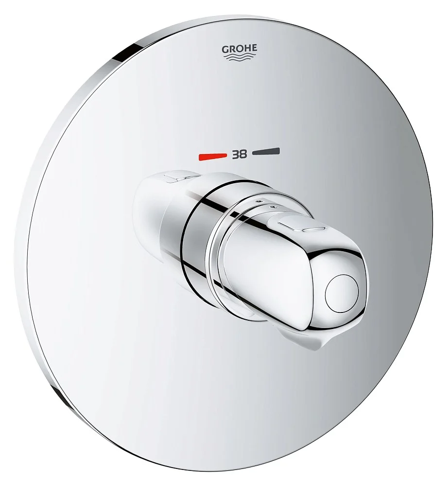 Этот комплект для регулировки температуры выпускается с глянцевым хромированным покрытием GROHE StarLight, предусматривает настенный монтаж и комплектуется подходящим встраиваемым блоком. Рукоятка изготовлена из высококачественного сплава и легко управляется даже намыленными руками, а система SafeStop, ограничивающая увеличение температуры на отметке 38°C, защищает детей и взрослых от ошпаривания. При желании можно установить более высокую температуру, разблокировав стопор SafeStop. Технология GROHE TurboStat обеспечивает поддержание температуры воды на постоянном уровне. Система монтажа GROHE QuickFix делает данное устройство удобным для пользователей уже на этапе установки: панель наружной части легко крепится к стене с помощью защелкивающегося механизма. Для переключения между выпуском для ванны и душем Вам потребуется установить подходящий комплект наружной части с регулятором для встраиваемых вентилей (19981000).