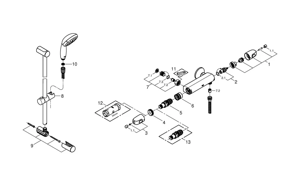 Купить Смесители для душа производства GROHE (Германия), коллекция Grohtherm 1000 New, код товара: 263795 можно выгодно в Сантемо.ру: