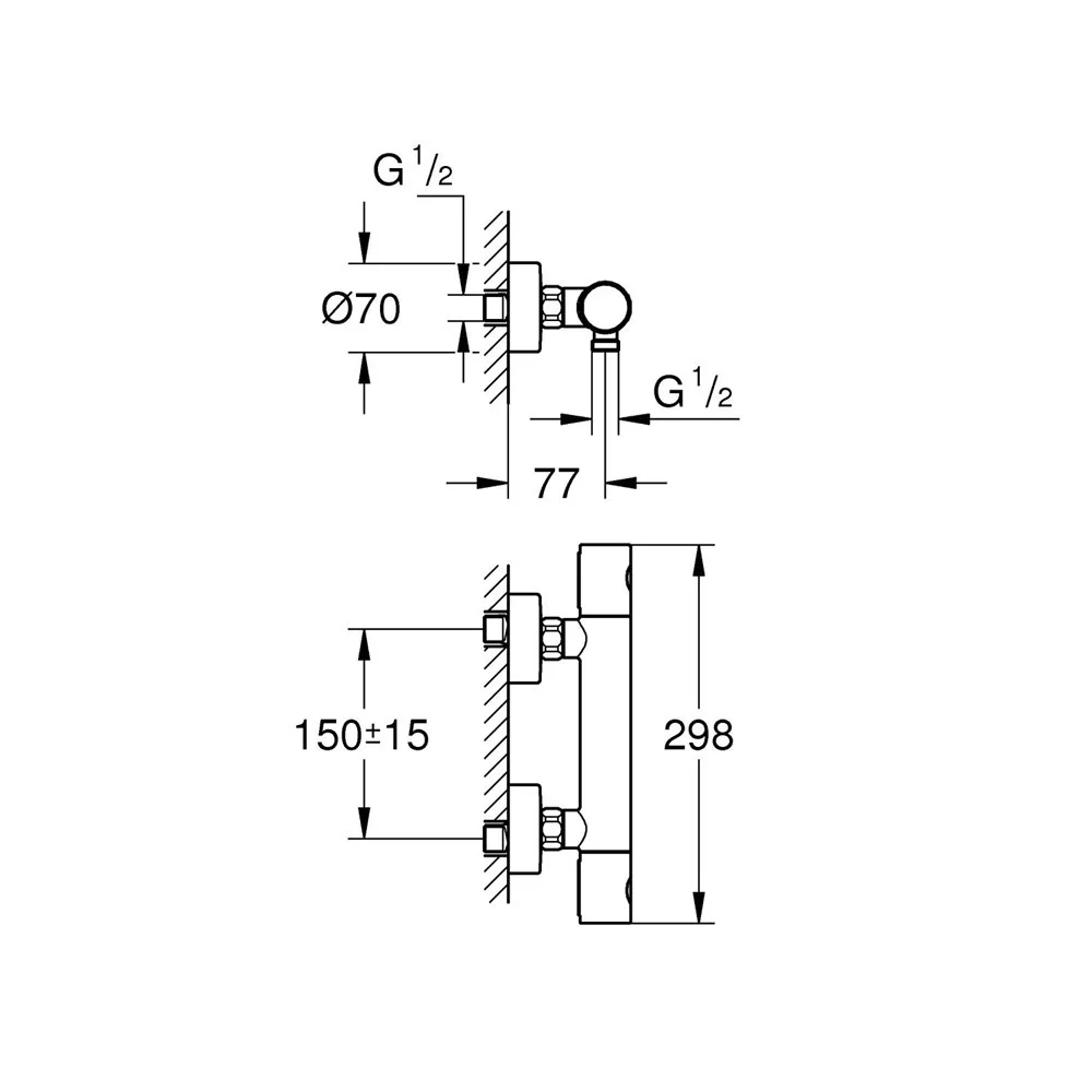- GROHE SafeStop Plus опционно ограничитель температуры на 43°C, включен