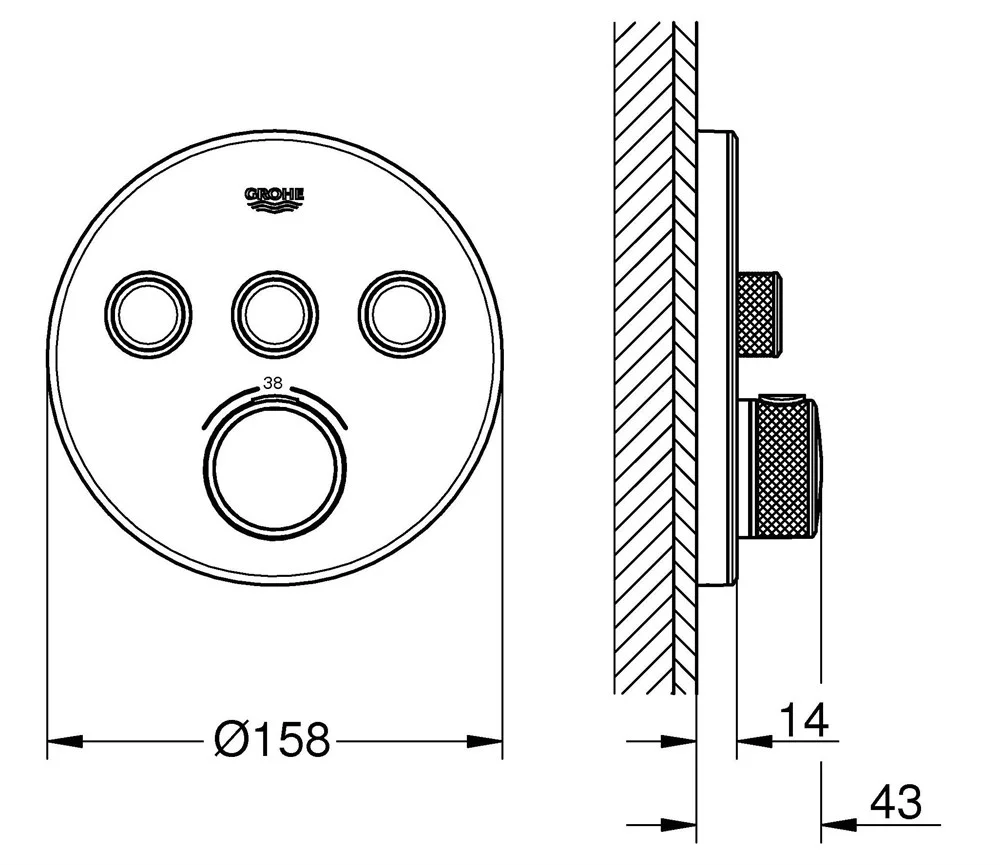 металлическая накладная панель с GROHE QuickFix (скрытые эксцентрики, уплотнение, скрытый монтаж), регулируемая на 6°