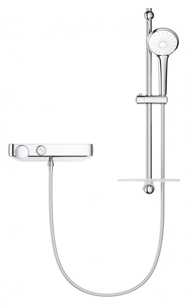 Термостат настенного монтажа GROHE Grohtherm SmartControl для душа с душевым набором делает управление вашим душем совсем простым - и вносит в дизайн ванной свою изюминку.