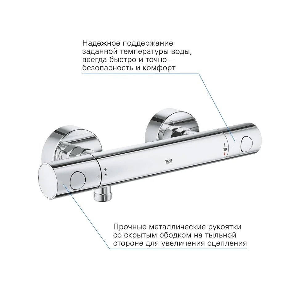 - рукоятка регулировки напора с кнопкой для экономии воды GROHE EcoButton и индивидуально устанавливаемым стопором